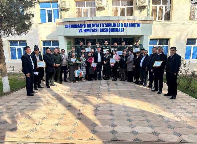 Бугун Ўсимликлар карантини ва ҳимояси  Агентлиги Сурхондарё вилояти  бошқармасида “Янги йилда янги зафарлар” рукни остида байрам тадбири бўлиб ўтди. Унда бошқарма бошлиғи Усмон Туропов, бошқарма мутахассислари ва тизимда фаолият олиб бораётган бир гуруҳ фаол карантин инспекторлари иштирок этишди.